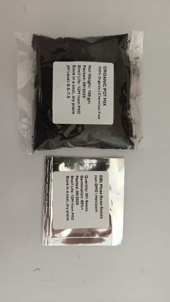Product Name: Double Moss Rose seeds + 100 grams Organic potmix Free